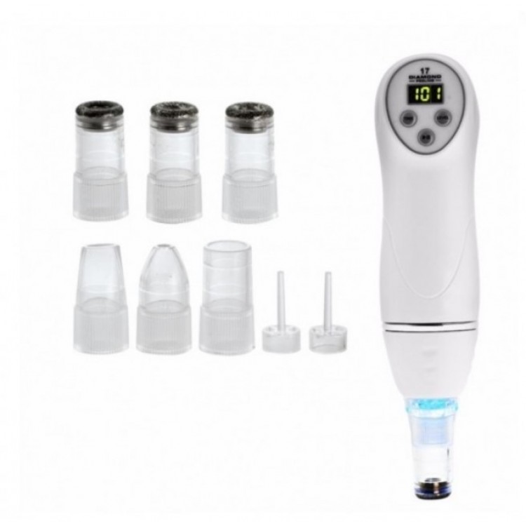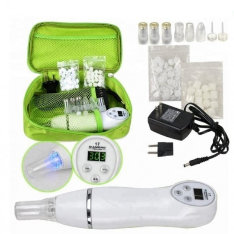 Комплектація: прилад для діамантової дермобразії, діамантові насадки – 3 шт, вакумні насадки – 3 шт, фільтр компонентів - 2 шт, ватний фільтр – 1 упаковка, поролоновий фільтр – 1 упаковка, адаптер живлення (100-240 Вт.) - 1 шт, сумочка - 1 шт, інструкція – 1 шт.