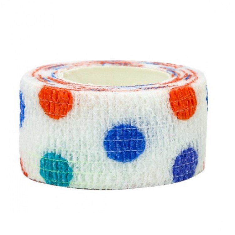 Бинт самоклеючий, з візерунком, еластичний, Coban, білий з кольоровими плямками, фіксуючий самозакріплюючий, бинт Кобан з візерунком, аутоадгезійний бинт, 2,5 см х 4,5 м