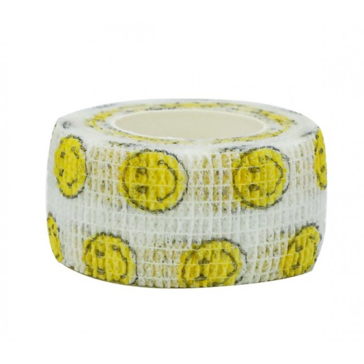 Бинт самоклеючий, з візерунком, еластичний, Coban, білий з жовтим смайликом, фіксуючий, самозакріплюючий, бинт Кобан з візерунком, аутоадгезійний бинт, 2,5 см х 4,5 м