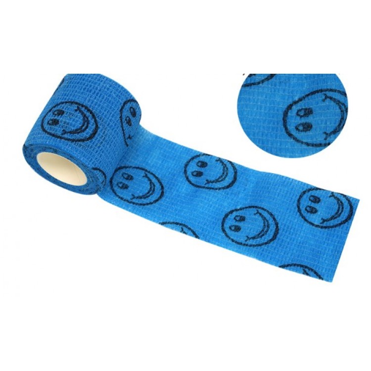 Бинт самоклеючий з візерунком еластичний Coban 2,5 см, блакитний смайл, фіксуючий самозакріплюючий, бинт Кобан з візерунком, аутоадгезійний бинт, 2,5 см х 4,5 м
