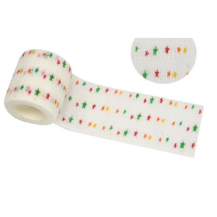 Бинт самоклеючий, еластичний, Coban, 5 см, білий із зірочками, фіксуючий, самозакріплюючий, бинт Кобан, аутоадгезійний бинт, 5 см х 4,5 м