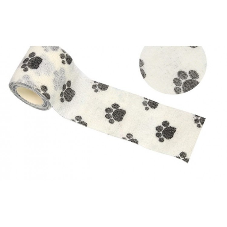Бинт самоклеючий, еластичний, Coban, білий з чорними лапками, фіксуючий, самозакріплюючий, бинт Кобан, аутоадгезійний бинт, 5 см х 4,5 м