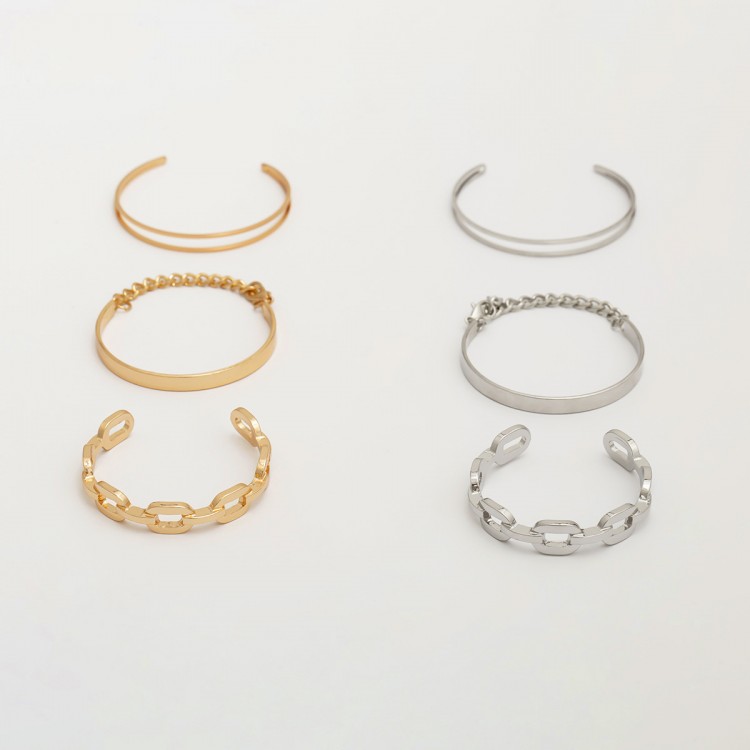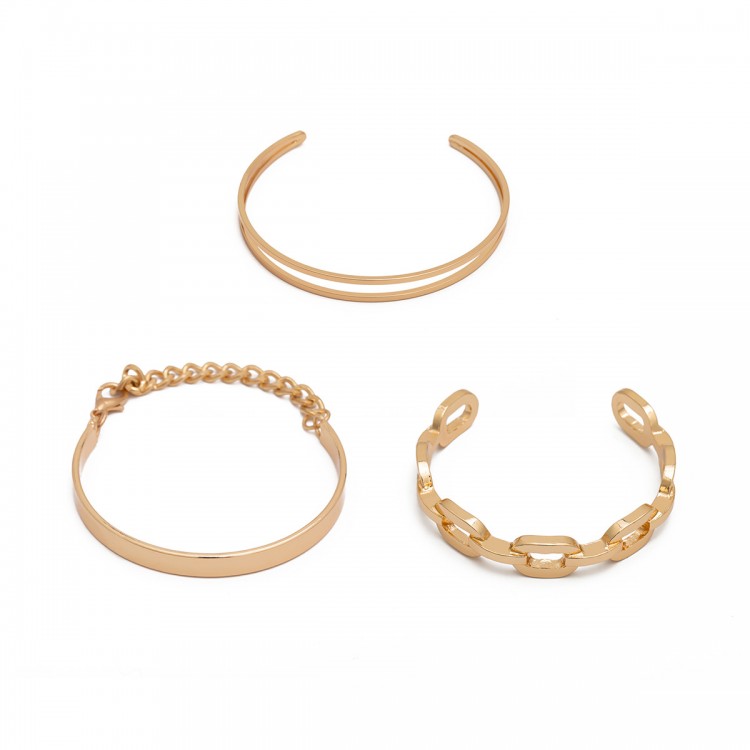 Стильний комплект складається із 3-х різних браслетів, які добре поєднуються між собою. Кожен з елементів можна носити як разом, так і окремо, а також, використовувати як окремий аксесуар, або комбінувати з іншими прикрасами.