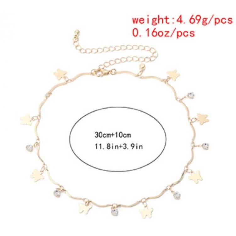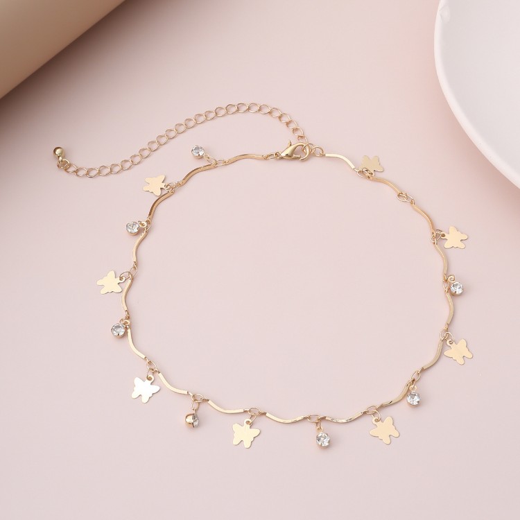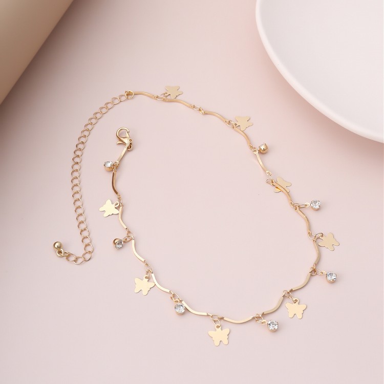 Ланцюжок - чокер з метеликами і стразами "Golden Butterfly", золото