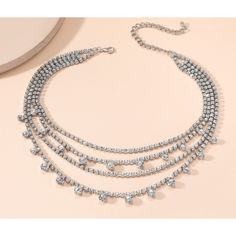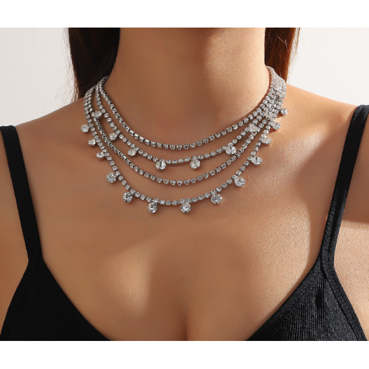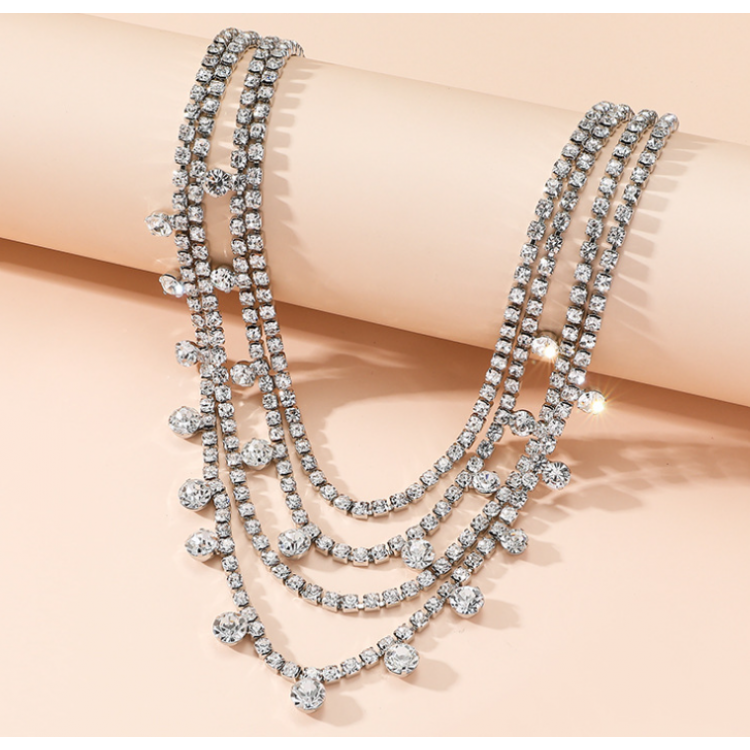 Чокер багатошаровий у 4 ряди зі стразами "Blow Shine", чокер - кольє, срібло