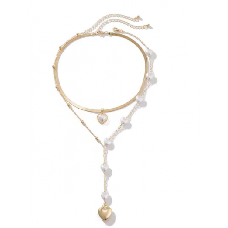 Трендовий подвійний ланцюжок з кулоном у формі серця з перлами дуже красиво виглядає і доповнить будь-який образ.