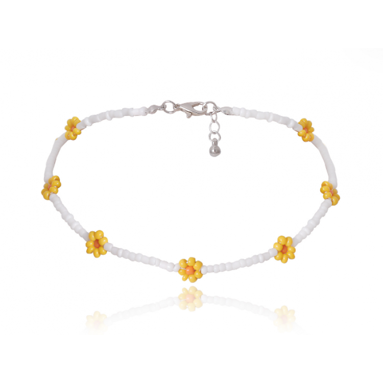 Трендовий ланцюжок із білого бісеру з жовтими ромашками прекрасно підійде як на кожний день так і на урочистий вихід.