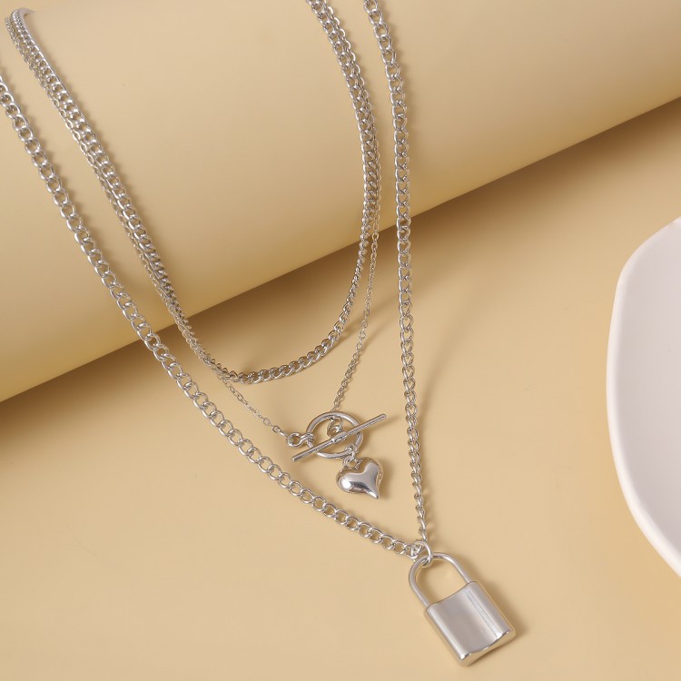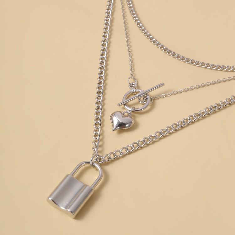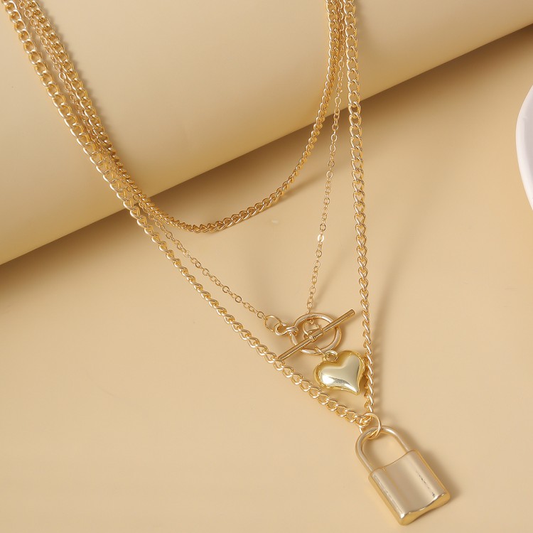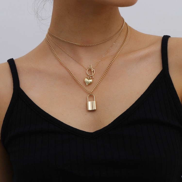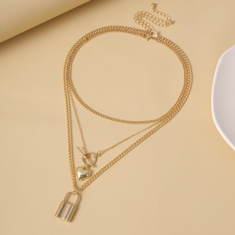Багатошаровий ланцюжок прикрашений замком та сердечком - для стильних дівчат. Прикраса універсальна і її легко поєднувати з іншими аксесуарами.