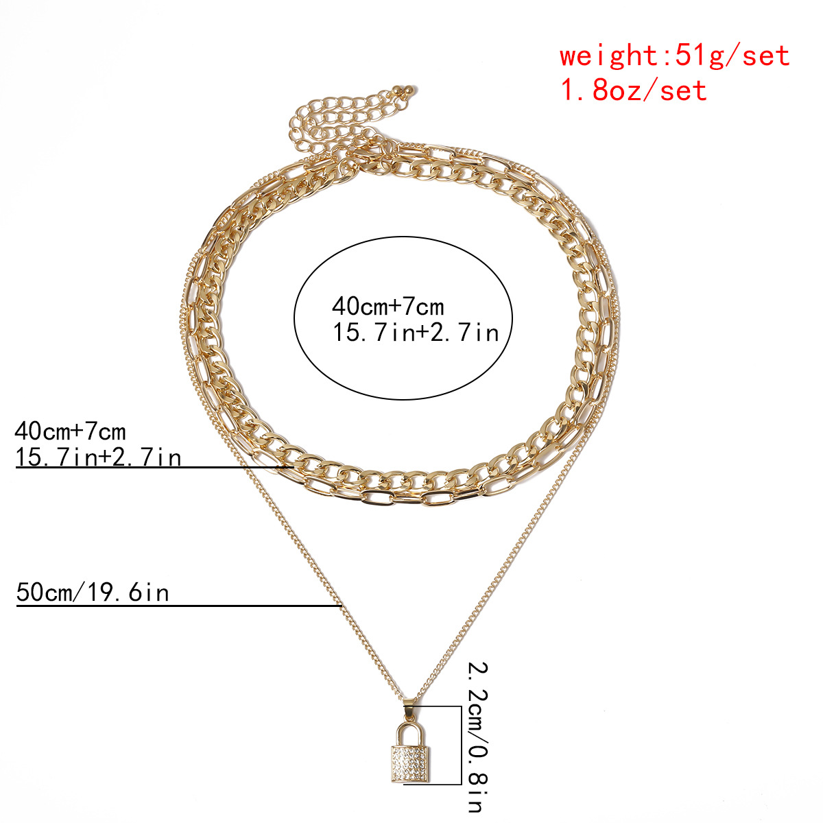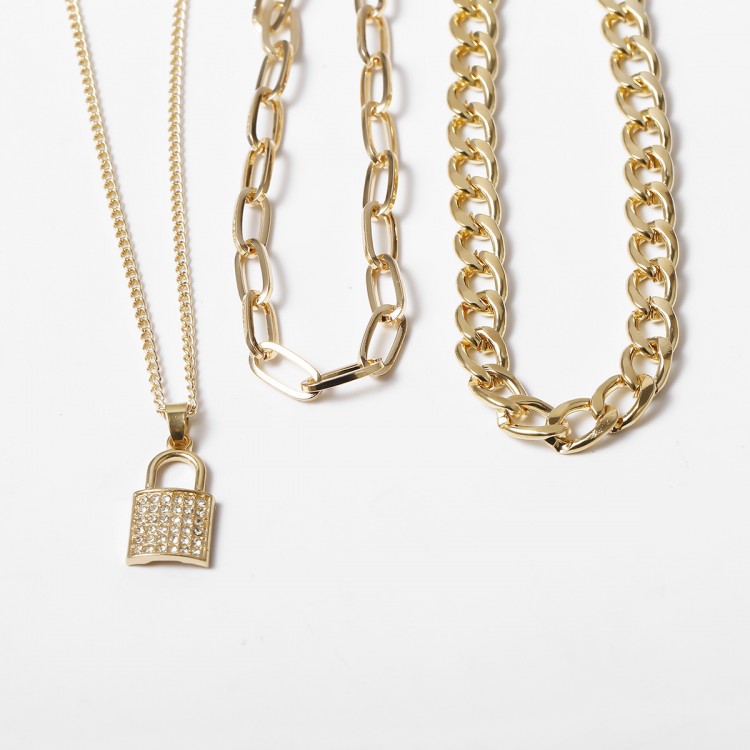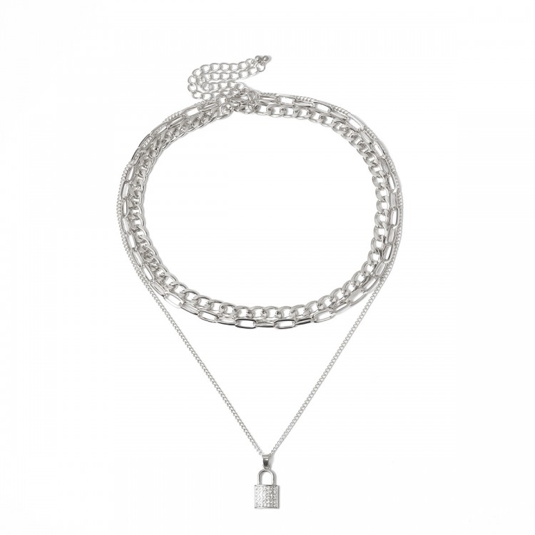 Ланцюжок багатошаровий, із замком та стразами, "Lock and Stones", 2 кольори
