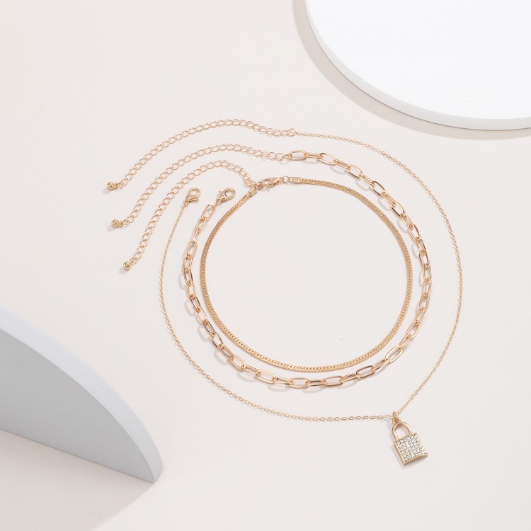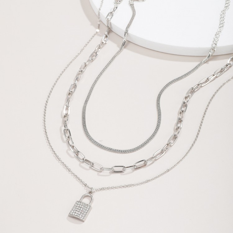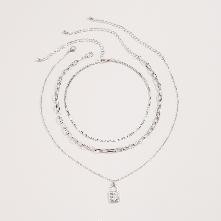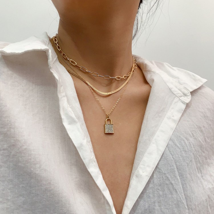Ланцюжок багатошаровий, із замком та стразами, "Lock and Stones", 2 кольори