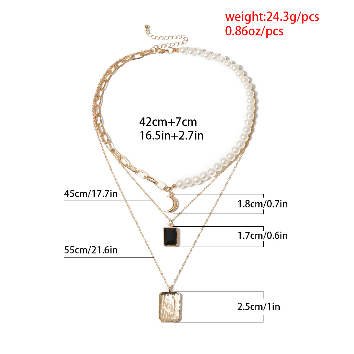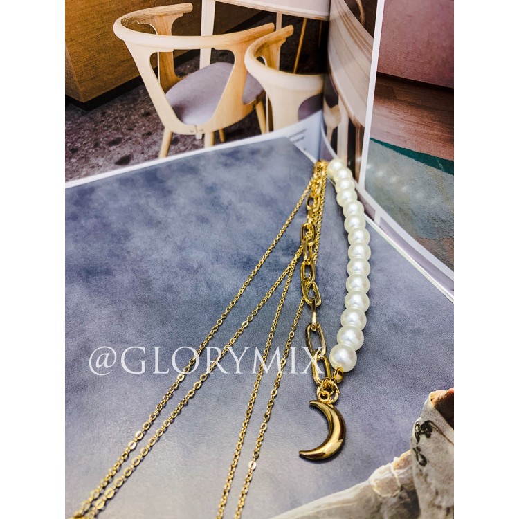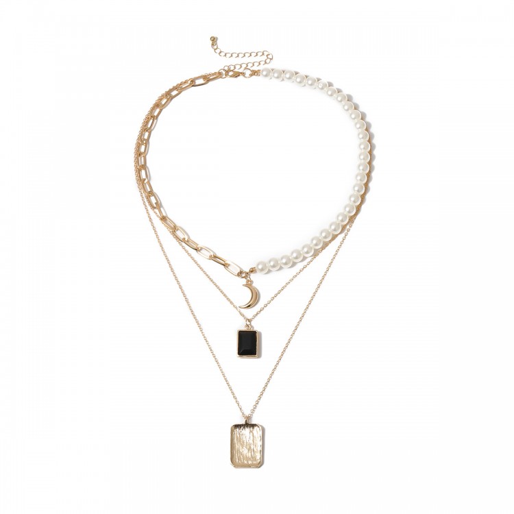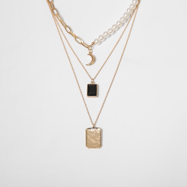 Ланцюжок багатошаровий з перлами "Black Stone", золото
