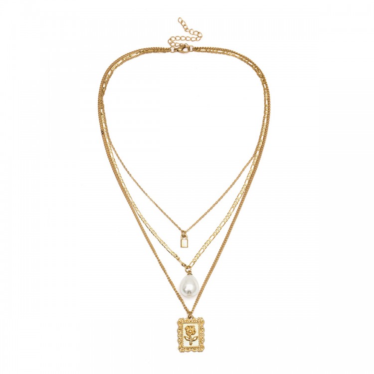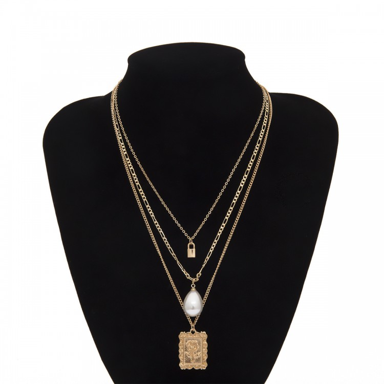 Багатошаровість - тренд останніх сезонів! Актуальний ланцюжок з перлиною, мініатюрним замочком та різними видами ланцюгів - круто виглядає на будь-якій модниці!