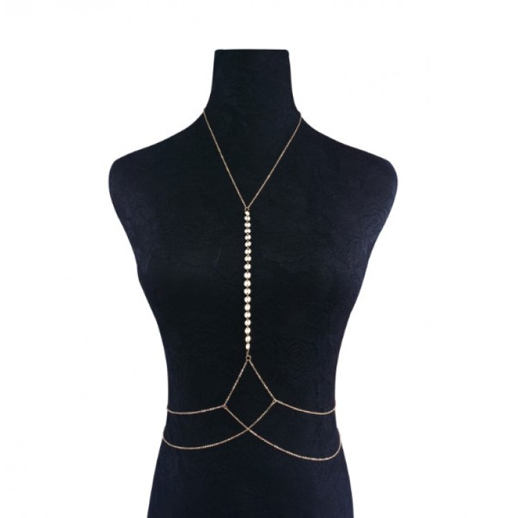 Ланцюжок на талію та шию – це витончена та стильна прикраса на літо, яка надасть вашому образу неповторності та елегантності. Цей унікальний аксесуар складається із двох ланцюжків, з'єднаних ланцюгом із перлинами. Прикраса чудово охоплює вашу талію та шию, створюючи неймовірний акцент.