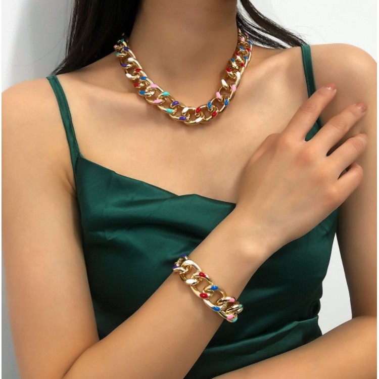 Масивний ланцюжок додасть завершальних ноток будь-якому образу. Дизайн з різнокольоровими ланками добре поєднується у комплекті із прикрасами аналогічного дизайну.