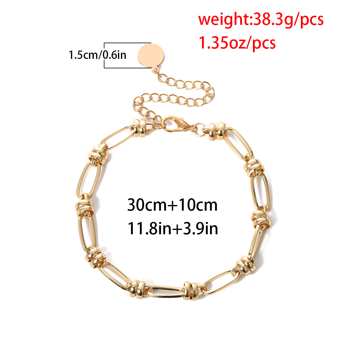 Яскравий ланцюжок із великими ланками добре поєднується у комплекті із браслетом аналогічного дизайну в золотому кольорі.