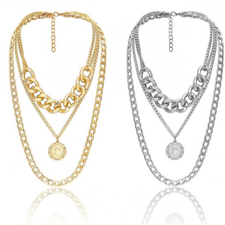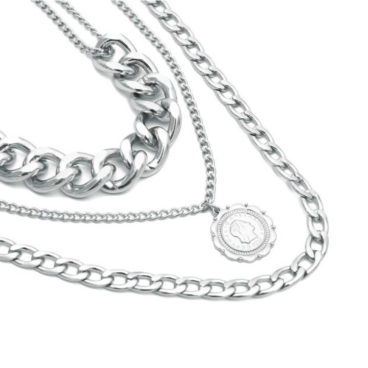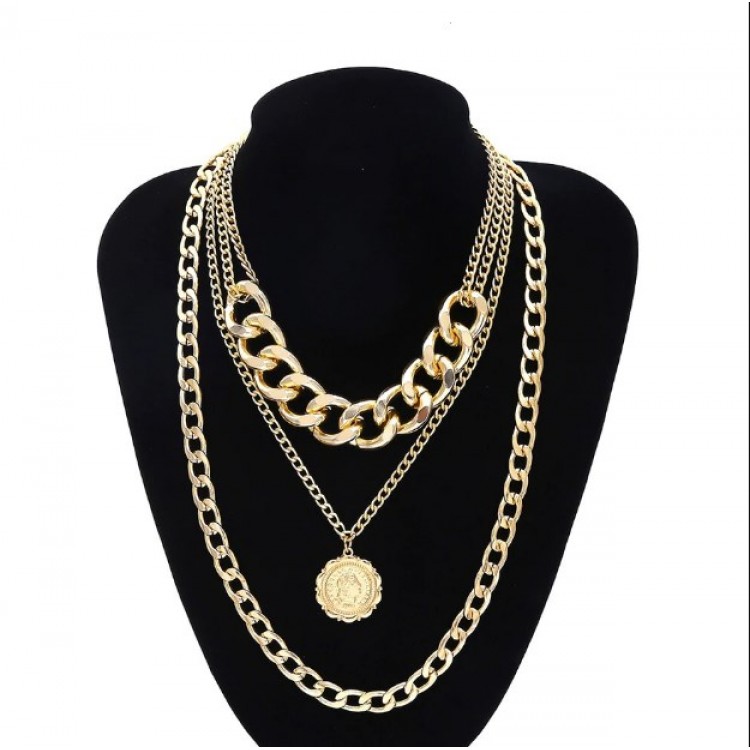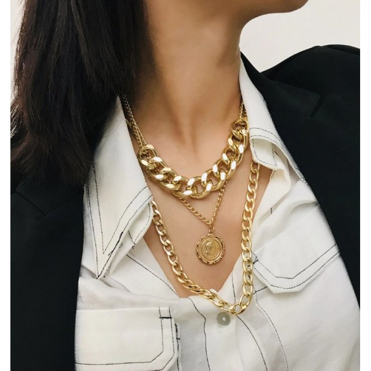 Потрійний ланцюжок із великими ланками та гарним кулоном - це поєднання двох стильних аксесуарів. Круглий медальйон стане чудовим акцентом Вашого стилю.