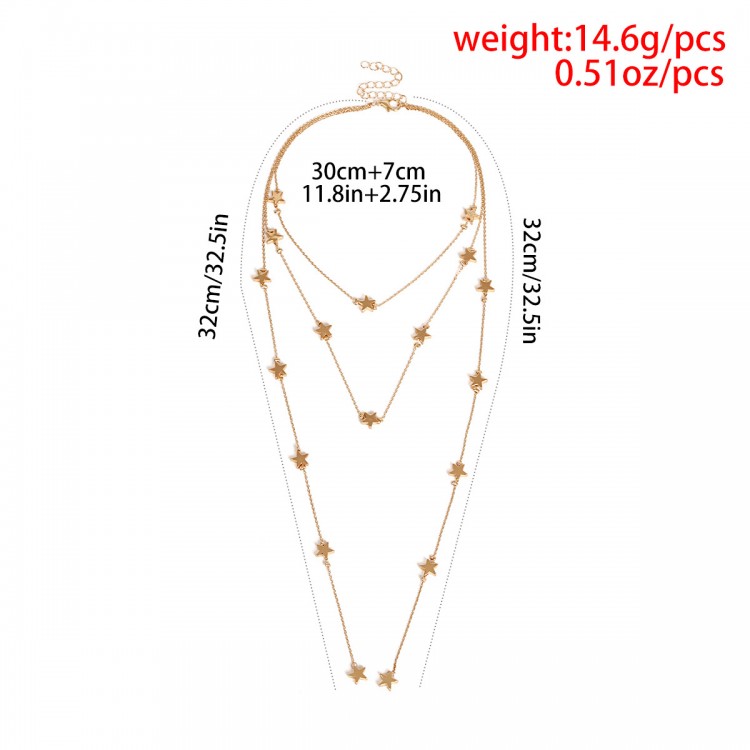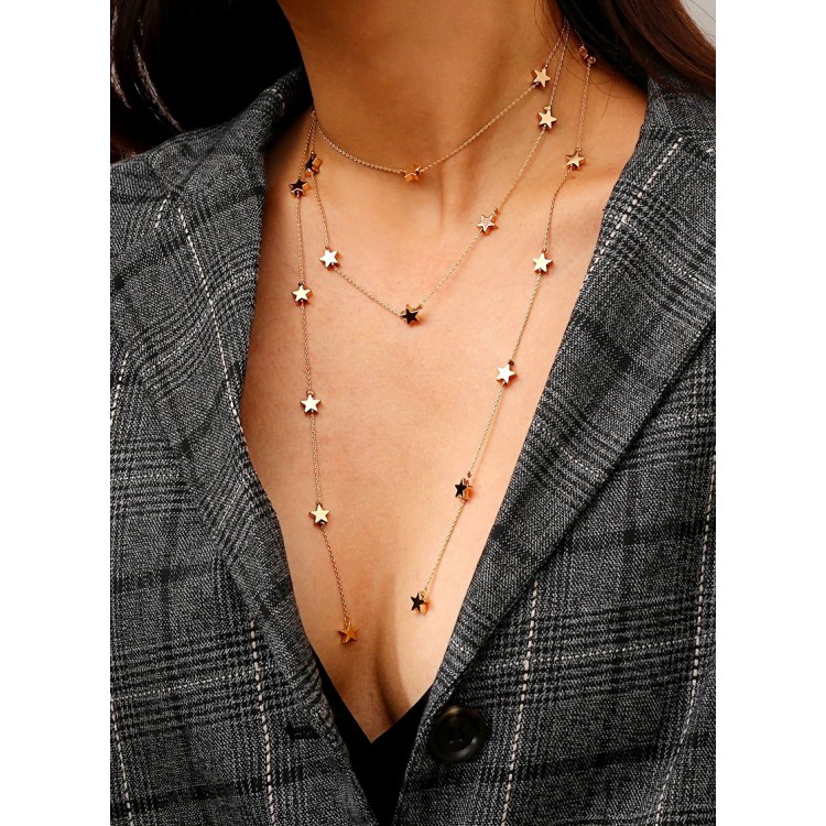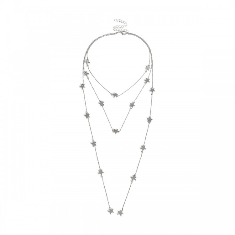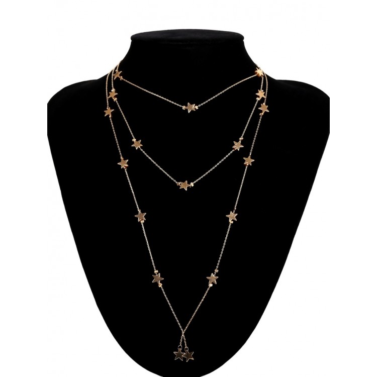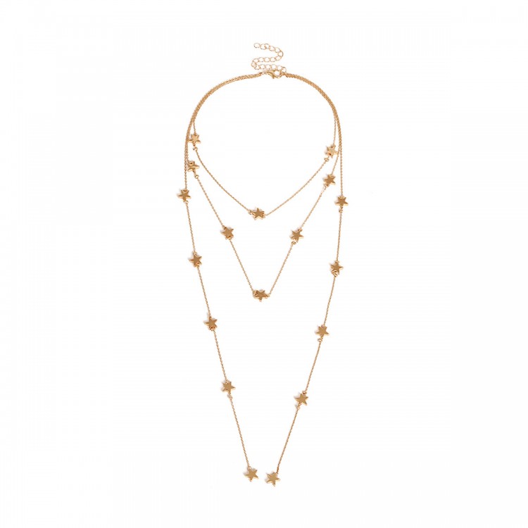 Потрійна підвіска, прикрашена маленькими зірочками, в 2 кольорах. Найдовший ланцюжок можна носити як закріпленим, так і у вільному вигляді. Ніжна прикраса підійде для стильних дівчат, які люблять яскраві аксесуари. Милі зірочки прикрашатимуть Вашу шию.
