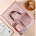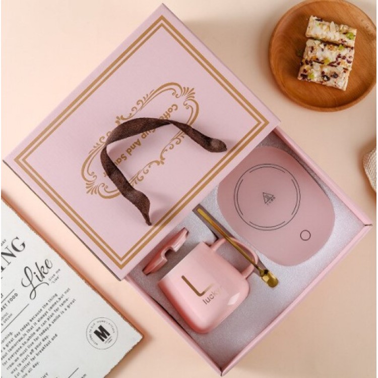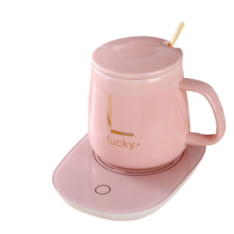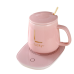 Чашка керамічна ніжно-рожева з підставкою - підігрівом, зарядкою USB і ложечкою в упаковці-пакеті