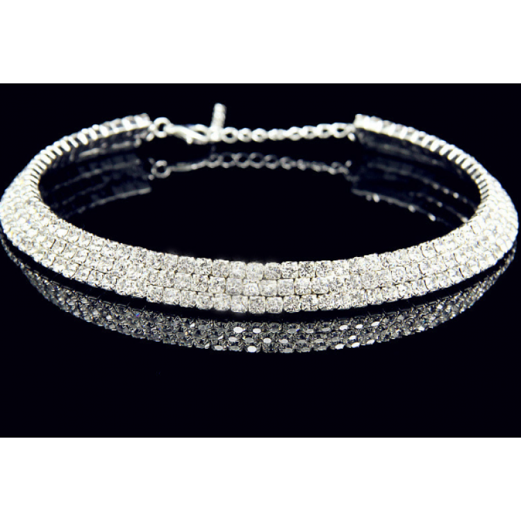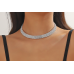 Цей широкий срібний ланцюжок прикрашений безліччю кристалів, що створюють надзвичайно сяючий ефект.
