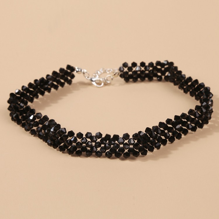 Чокер стрічка з чорним стеклярусом "Total Black", чорний чокер