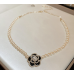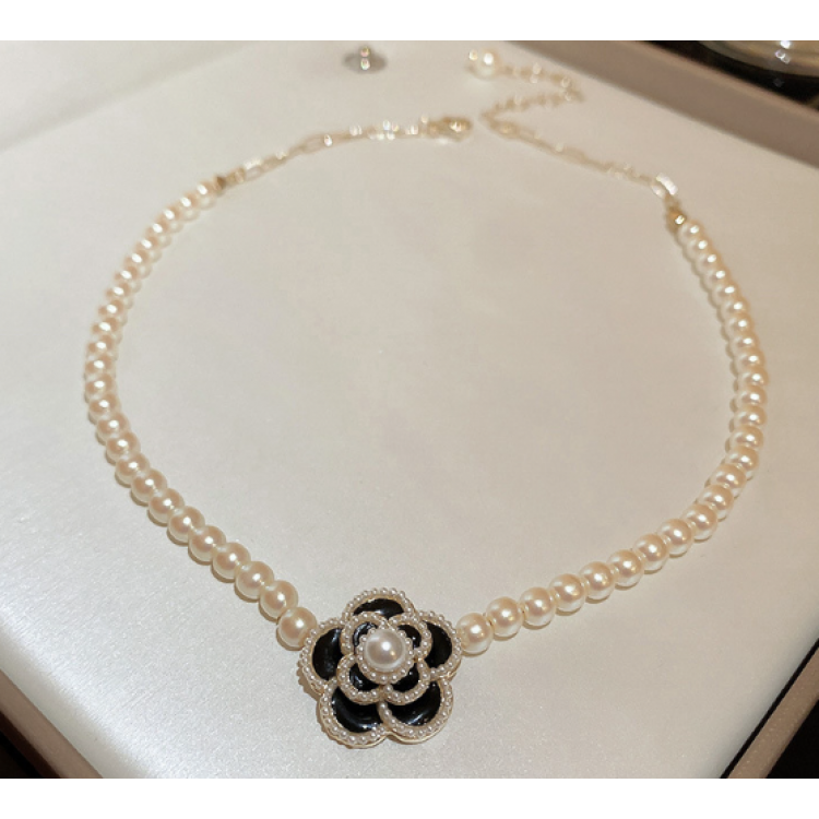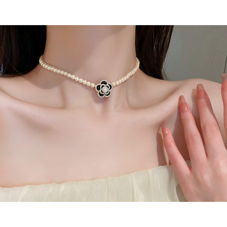 Чокер з перлами "Flower Pearl", білий чокер із чорною квіткою, 31,7 см