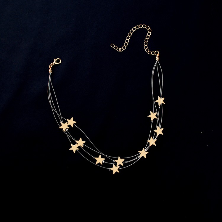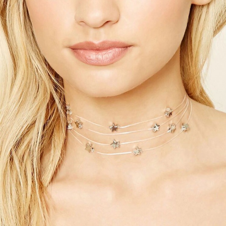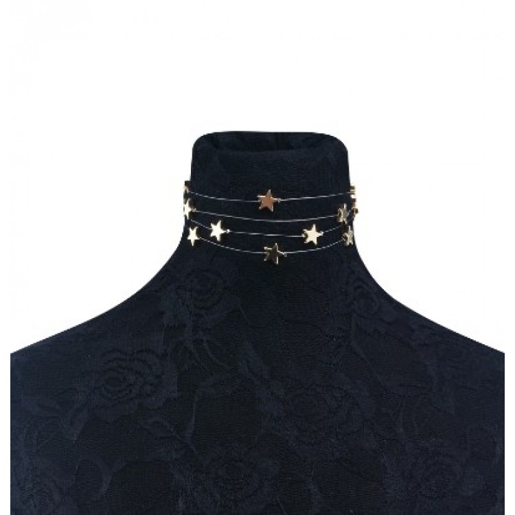 Чокер з потрійним ланцюжком, який прикрашений зірочками в золотом і срібному кольорі.
