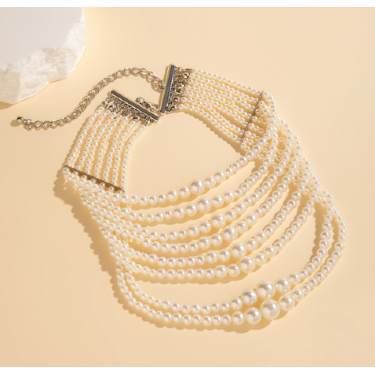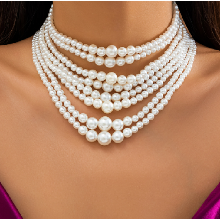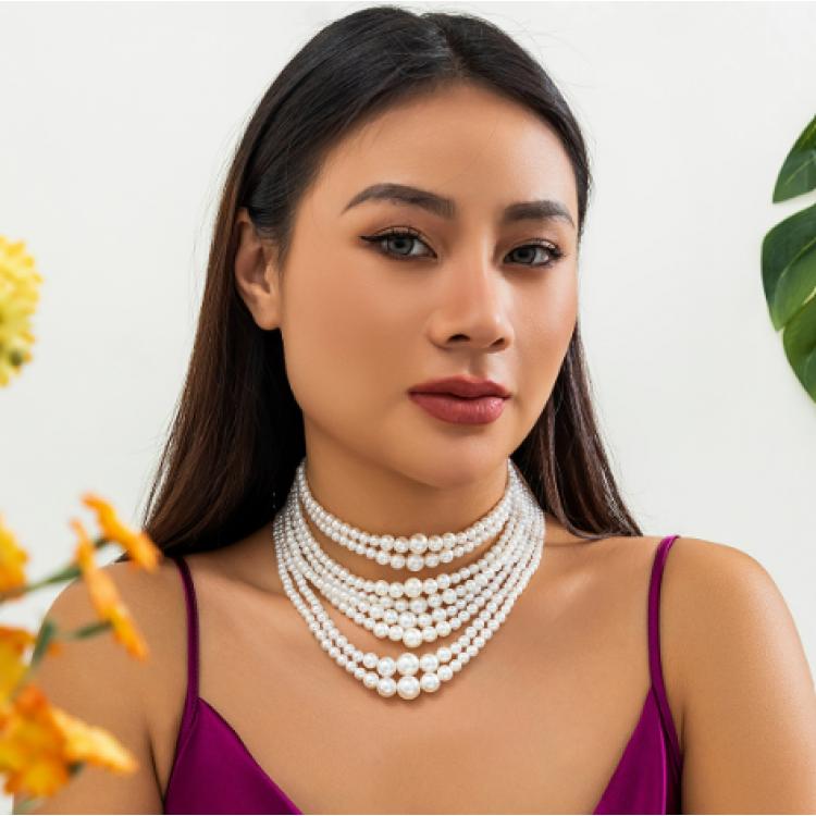 Багатошаровий чокер із перлами ідеально впишеться у вечірній образ і буде чудовим його доповненням.