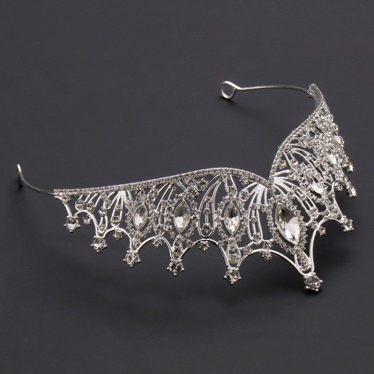 Срібна корона із блискучими кристалами створена для того, щоб додати королівського шарму до вашого образу. Виготовлена з міцного металу та прикрашена великими та дрібними каменями, вона виглядає елегантно і дорого. Ідеально підходить для весіль, урочистих заходів, фотосесій чи конкурсів краси.