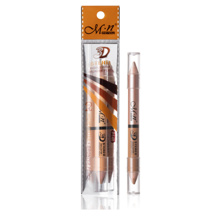 Двосторонній олівець коректор 2 в 1, 3D Stereo Highlighter + Bronzer Pencil, хайлайтер бронзер, два відтінки, 2 г