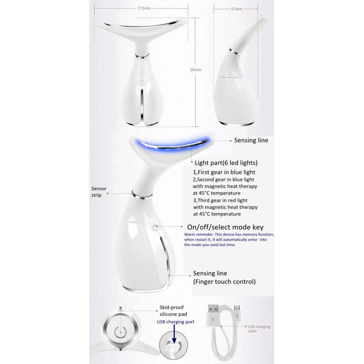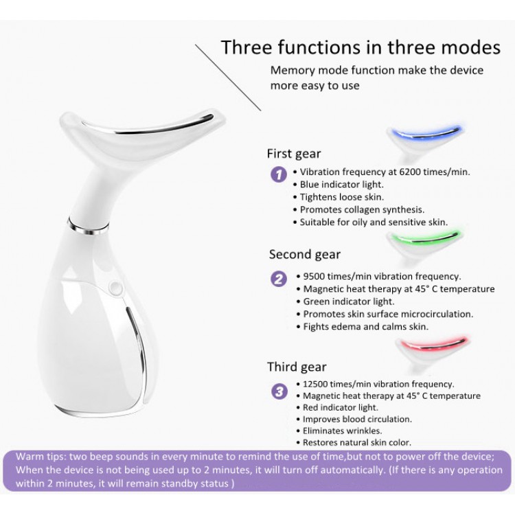 Electric Vibration Dolphin Neck Skin - це унікальний електричний антивіковий масажер для поліпшення стану шкіри на шиї. Принцип роботи - розумна вібрація технології нагріву, охолодження та світлотерапії, що допомагає розслабляти м'язи шиї і зміцнювати епідерміс. В результаті, шкіра стає гарною та шовковистою.