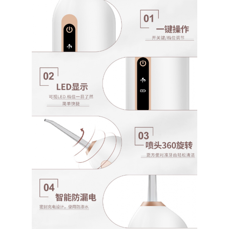 Іригатор для ротової порожнини, портативний з 2 насадками, 230 мл