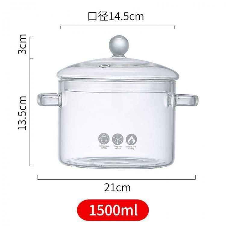 Каструля скляна з кришкою з боросилікатного скла, прозора каструля, 1,5 л