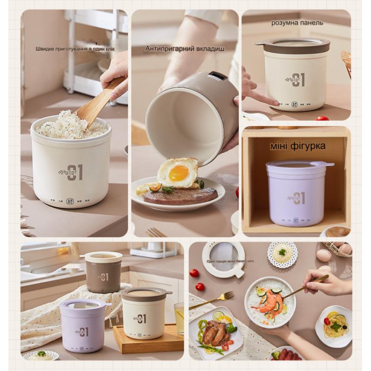 Мультифункціональна електрична каструля — це ідеальний вибір для приготування страв на двох або однієї порції. Її компактний розмір, об’єм 1 літр і потужність 450 Вт дозволяють швидко й ефективно приготувати їжу вдома або в офісі.