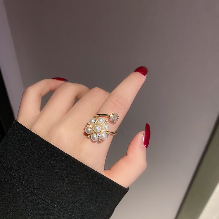 Каблучка - спіраль, із перлами та стразами, "Bud", колір золото, 1 шт