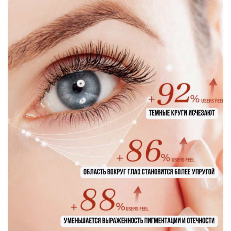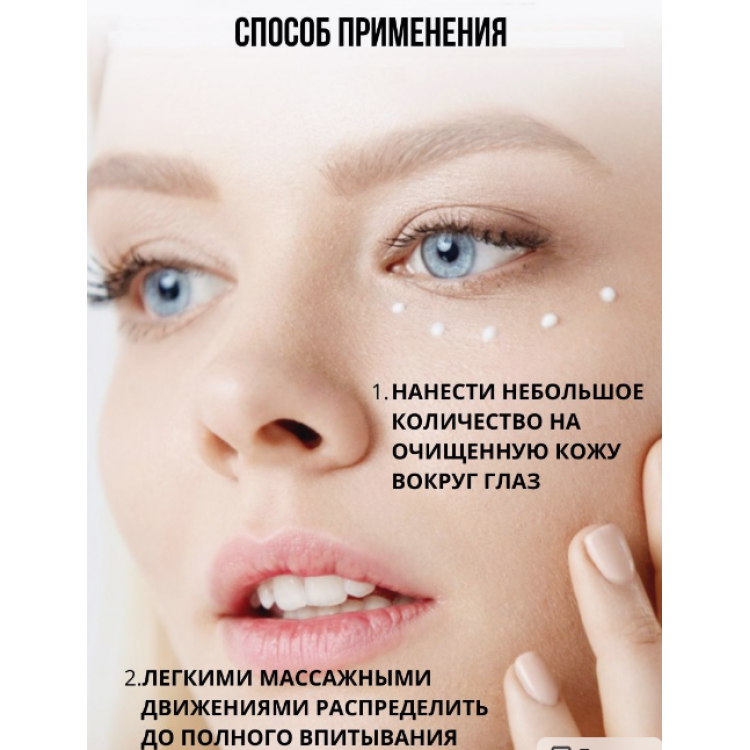 Крем для області навколо очей глибоко зволожує, знімає набряклість, надаючи шкірі повік еластичності та пружності, запобігає старінню та втраті вологи, ефективно розгладжує дрібні зморшки, надаючи шкірі свіжішого та молодшого вигляду. Молочна кислота інтенсивно зволожує та пом'якшує, запобігаючи втраті вологи, захищає від агресивної дії зовнішніх факторів. Ретинол омолоджує, попереджає процес старіння, сприяє оновленню шкіри, знімає набряклість, тонізує, роблячи шкіру свіжішою та підтягнутою.