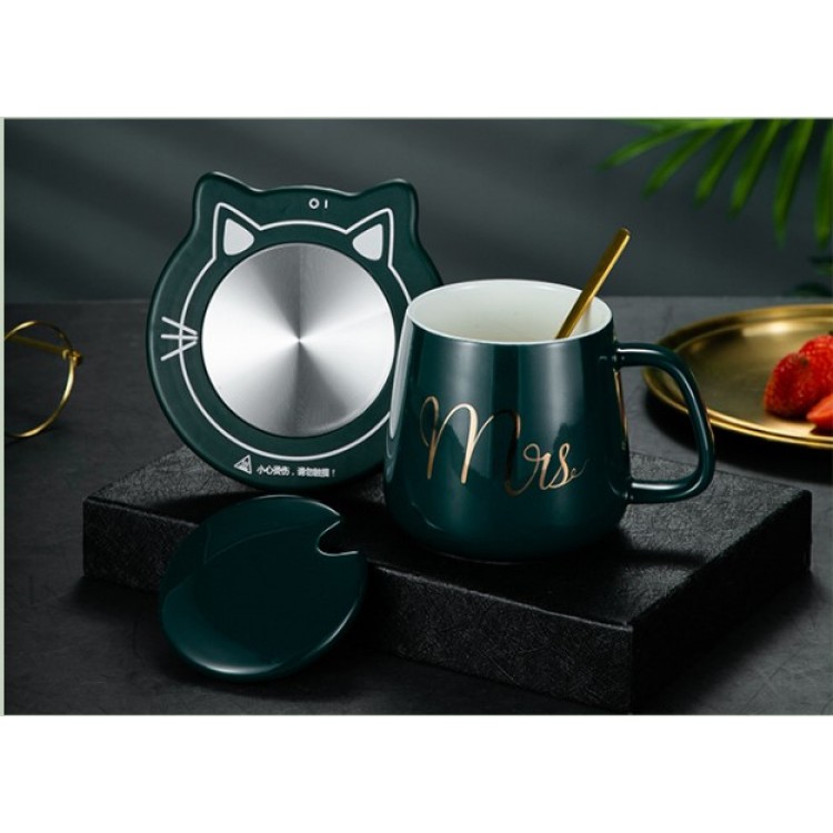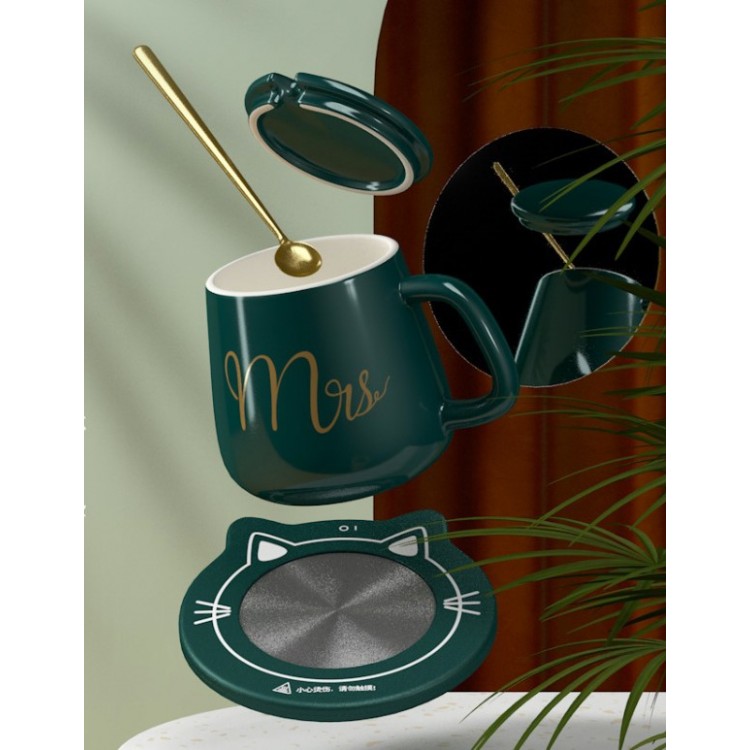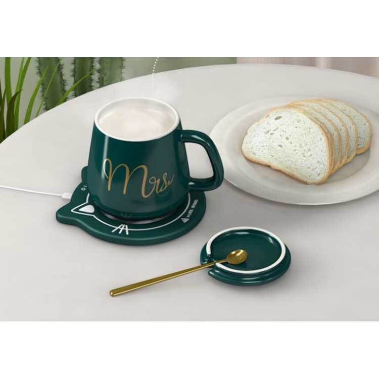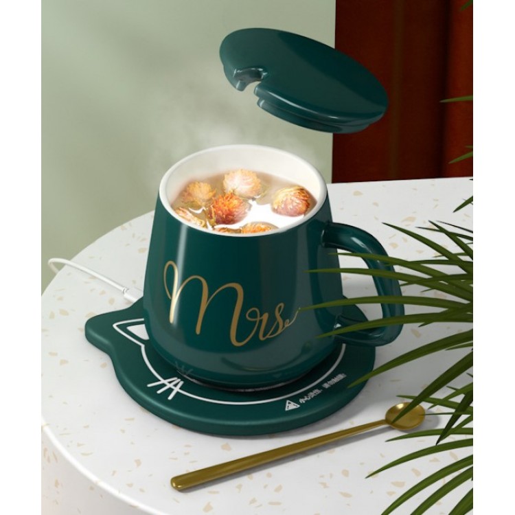 Чашка керамічна темно-зелена з підставкою - підігрівом є новинкою. Кожен з нас любить зручності і ця чашка неодмінно додасть комфорту у ваше життя. Чашка з гарячим напоєм, поставлена на стіл під час роботи, дуже часто залишається забута після пари ковтків. Для того, щоб ваш напій залишався гарячим, ця чашка обладнана функцією з підігрівом. Незамінний аксесуар для офісного працівника, завдяки якому ваш напій ніколи не охолоне! Спеціальна чашка в наборі з термо-дном призначена для швидкого нагрівання рідини. Кавова ложечка в подарунок. З таким набором ваші напої завжди будуть теплі і смачні. Весь комплект укомплектований в подарунковій коробці і є чудовим подарунком коханим і дорогим для Вас людей.