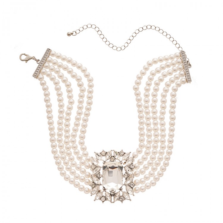 Ланцюжок - чокер багатошаровий із перлами та кристалами "Crystal Pearl", срібло