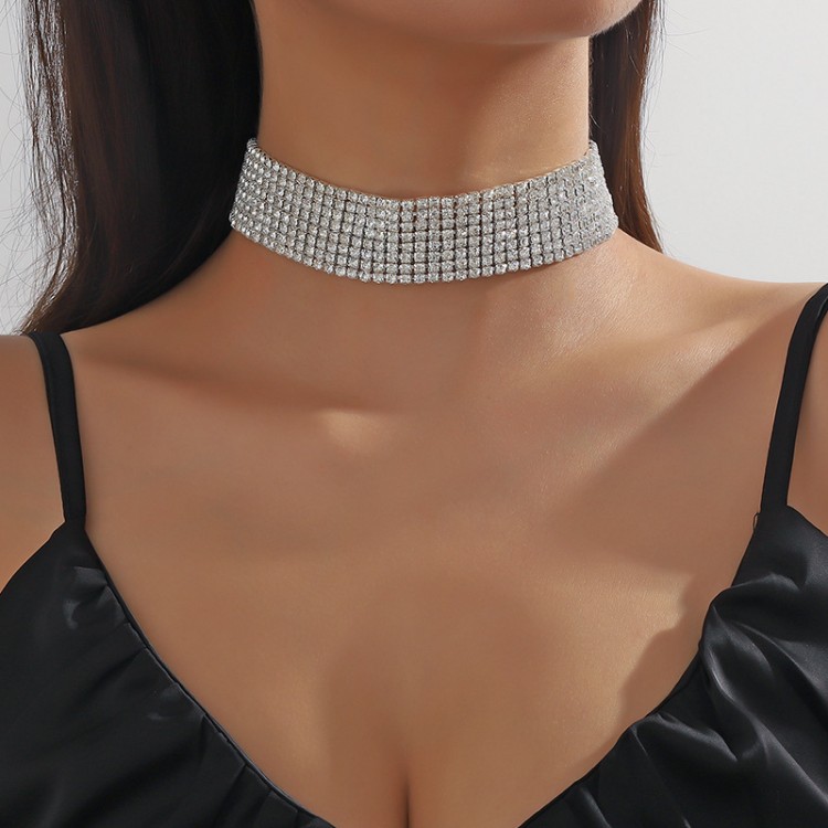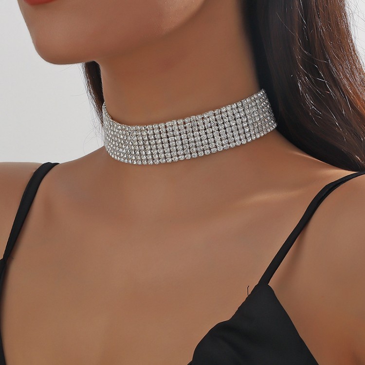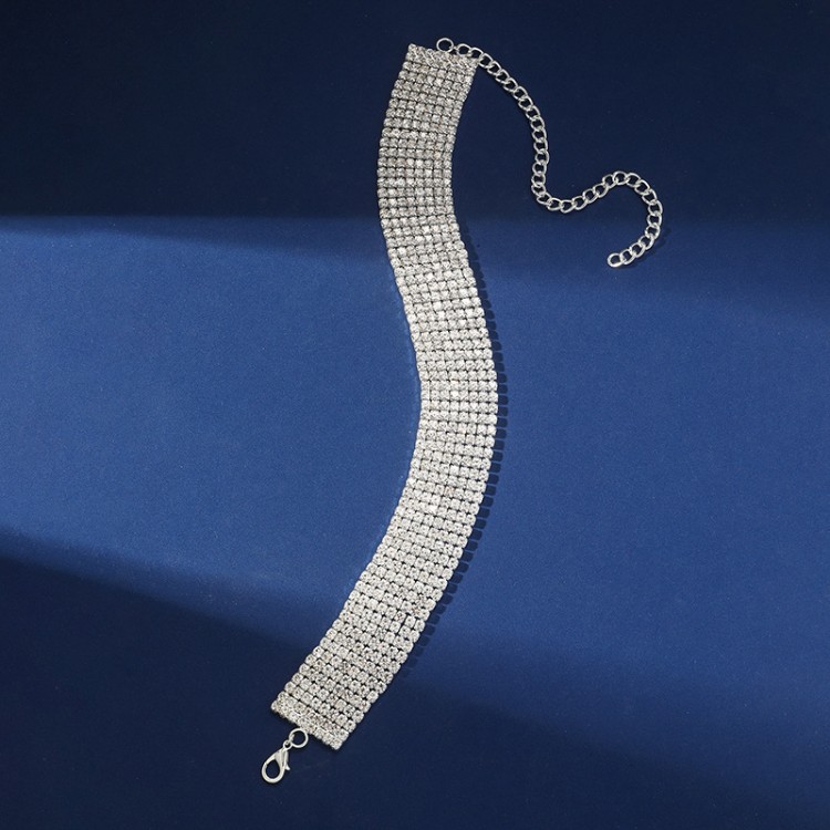 Цей розкішний широкий чокер, прикрашений безліччю кристалів, надає вашому образу неповторного блиску та елегантності.