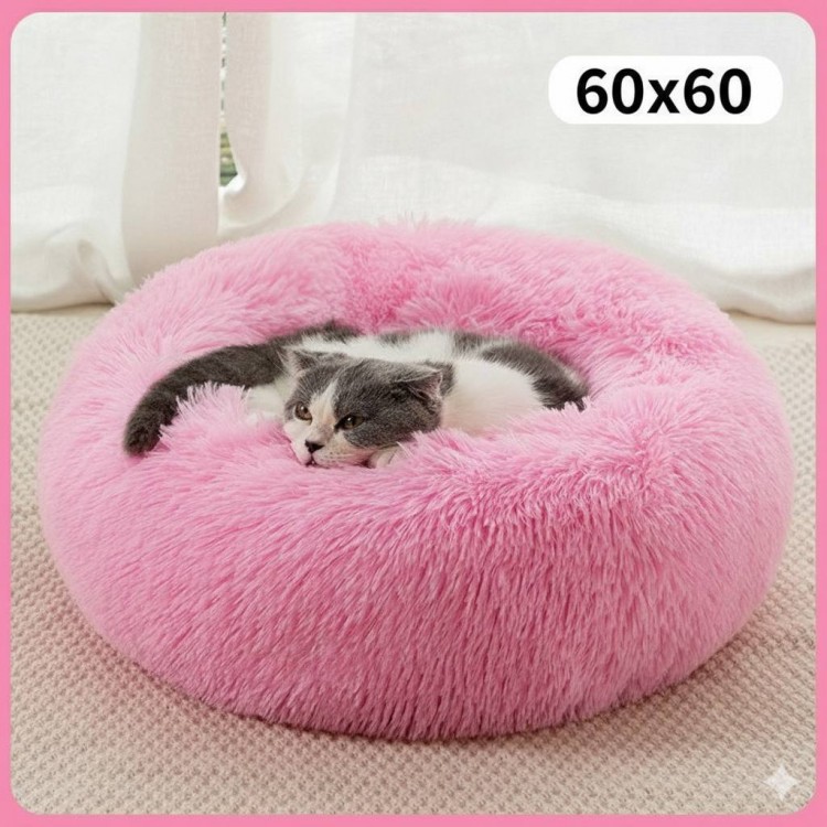 Лежак для собак та котів, плюшевий килимок для домашніх тварин, рожевий, 60х60х18 см