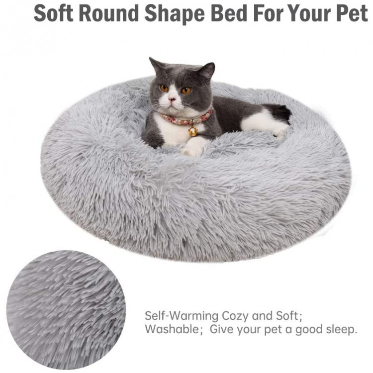 Лежак для собак та котів, плюшевий килимок для домашніх тварин, сірий, 60х60х18 см