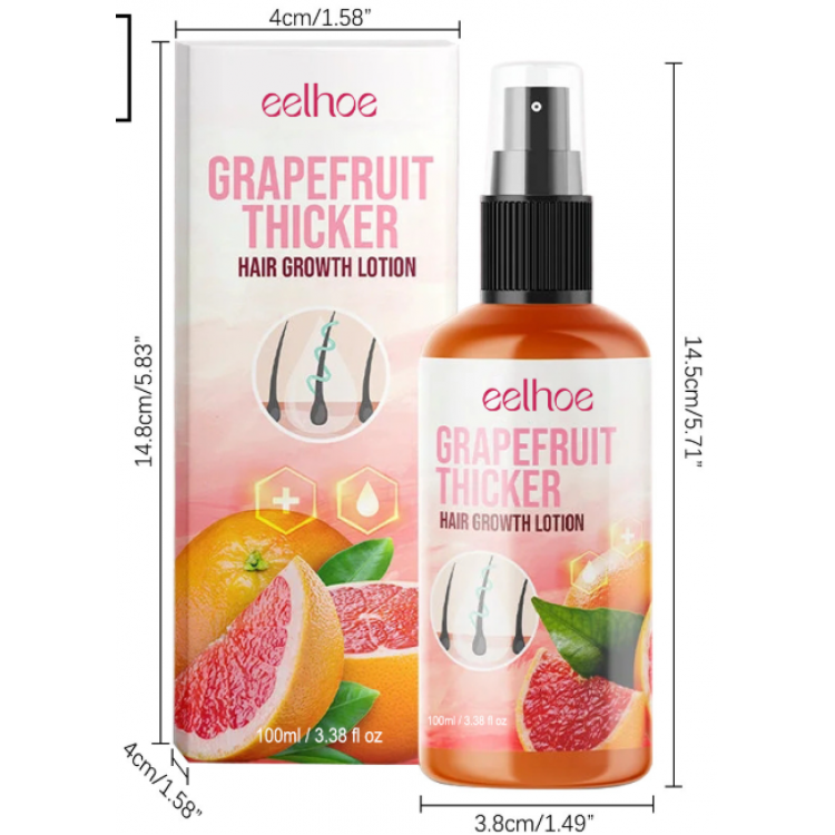 Eelhoe Grapefruit Thicker Hair Growth Lotion – це інноваційний засіб для зміцнення волосся, розроблений для боротьби з ламкістю та стимуляції росту нового волосся. Основний активний компонент – грейпфрутовий екстракт, який багатий на антиоксиданти та вітаміни, що живлять шкіру голови, зміцнюють корені волосся і стимулюють ріст густого, здорового волосся.