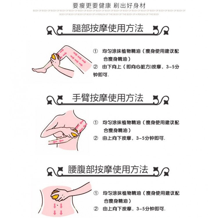Продукт дозволяє провести як антицелюлітний масаж проблемних зон, так і розслаблюючий масаж спини та комірної зони, протинабряковий масаж ніг. Масуючі, м'які спеціальні пухирці допомагають добре розганяти лімфу та кровотік, що сприяє зменшенню жирових відкладень.