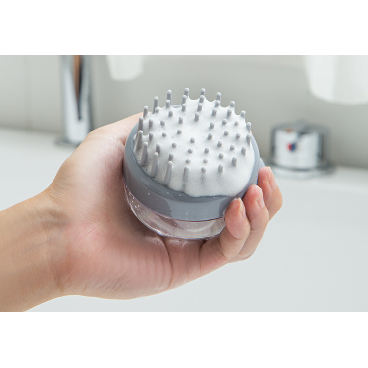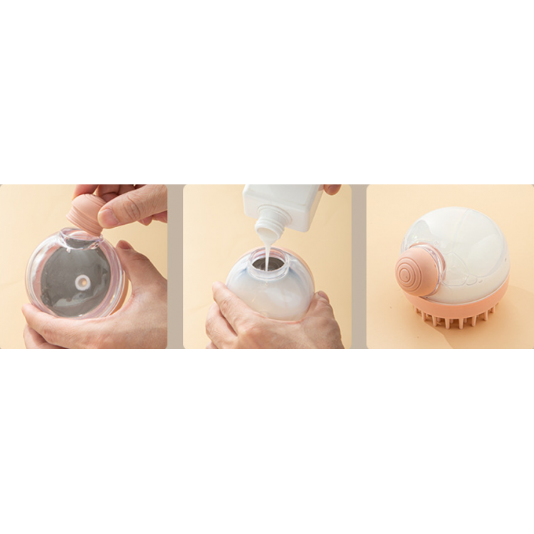 Масажна щітка для душу з дозатором для шампуня, силіконова, з великими щетинками, два кольори, 8,5х7 см