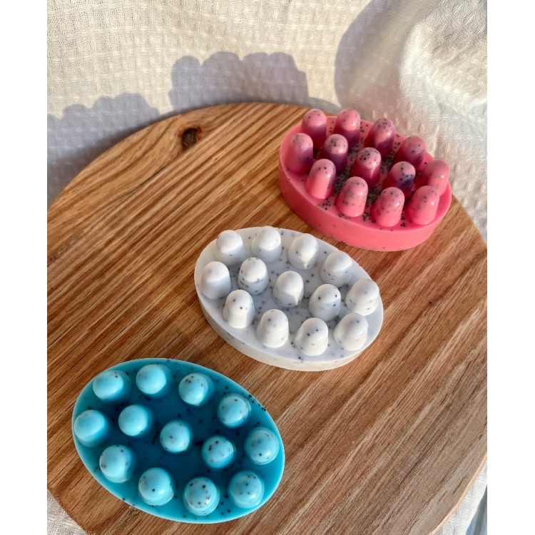 Масажне мило ручної роботи — бестселер серед дівчат! Воно дуже приємне у використанні, масажні «пальчики» ідеально розслабляють м’язи і знімають напруження. Мило володіє тонізуючим ефектом, покращує кровообіг та рельєф дерми, ефективно зменшує розтяжки, в'ялість та целюліт. Шкіра, після використання засобу, пружна, ніжна і гладенька.