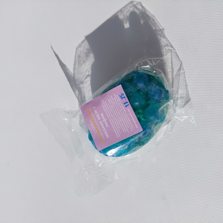 Застосування: перед використанням в душі, потримайте мило 10-15 секунд під струменем гарячої води, щоб люфа пом'якшала. Масажною стороною намилити проблемні ділянки шкіри, після чого - розтирати тіло іншою стороною мила - волокнистою, як звичайною мочалкою. Люфа ідеально замінить скраб або суху щітку для масажу.