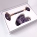 Набір для масажу ГуаШа для обличчя з аметисту — ролик і шкребок у вигляді галочки.