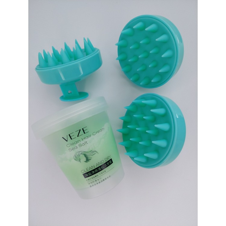 Набір: Скраб для шкіри голови та волосся Veze Clean Hair Cream Sea Salt, 250 г + Масажер для шкіри голови, силіконовий Head Cleansing Brush