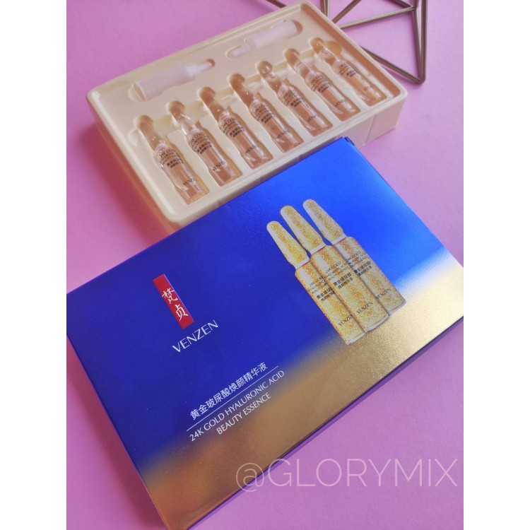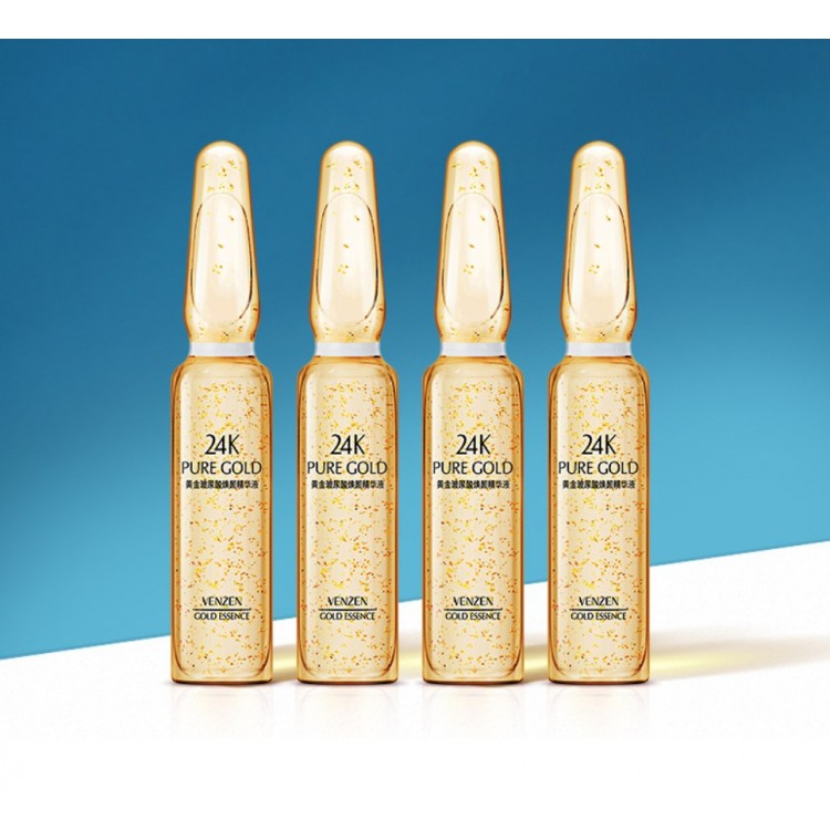 Набір ампул VENZEN 24K Pure Gold Essence з гіалуроновою кислотою і частинками золота, упаковка (2 мл х 7шт)