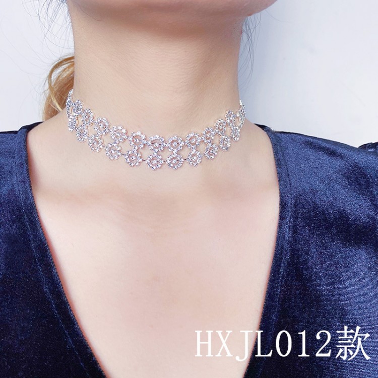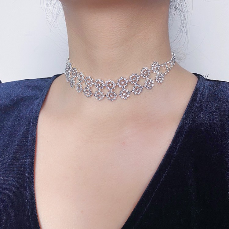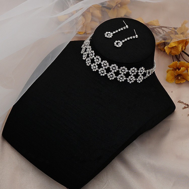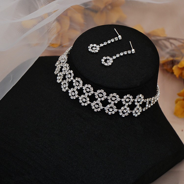 Набір: чокер зі стразами сережки "Lovely Flowers", срібло