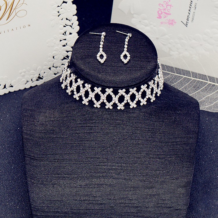 Набір: чокер зі стразами сережки "Stylish Eyes", срібло